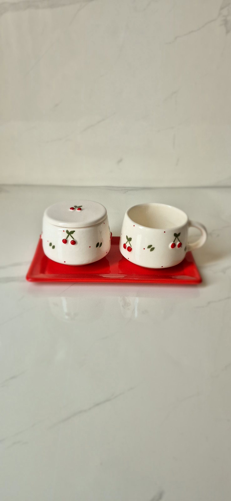 ست چای خوری تکنفره طرح آلبالو برجسته با قندون دردار و زیره۴۳۰٬۰۰۰ تومان