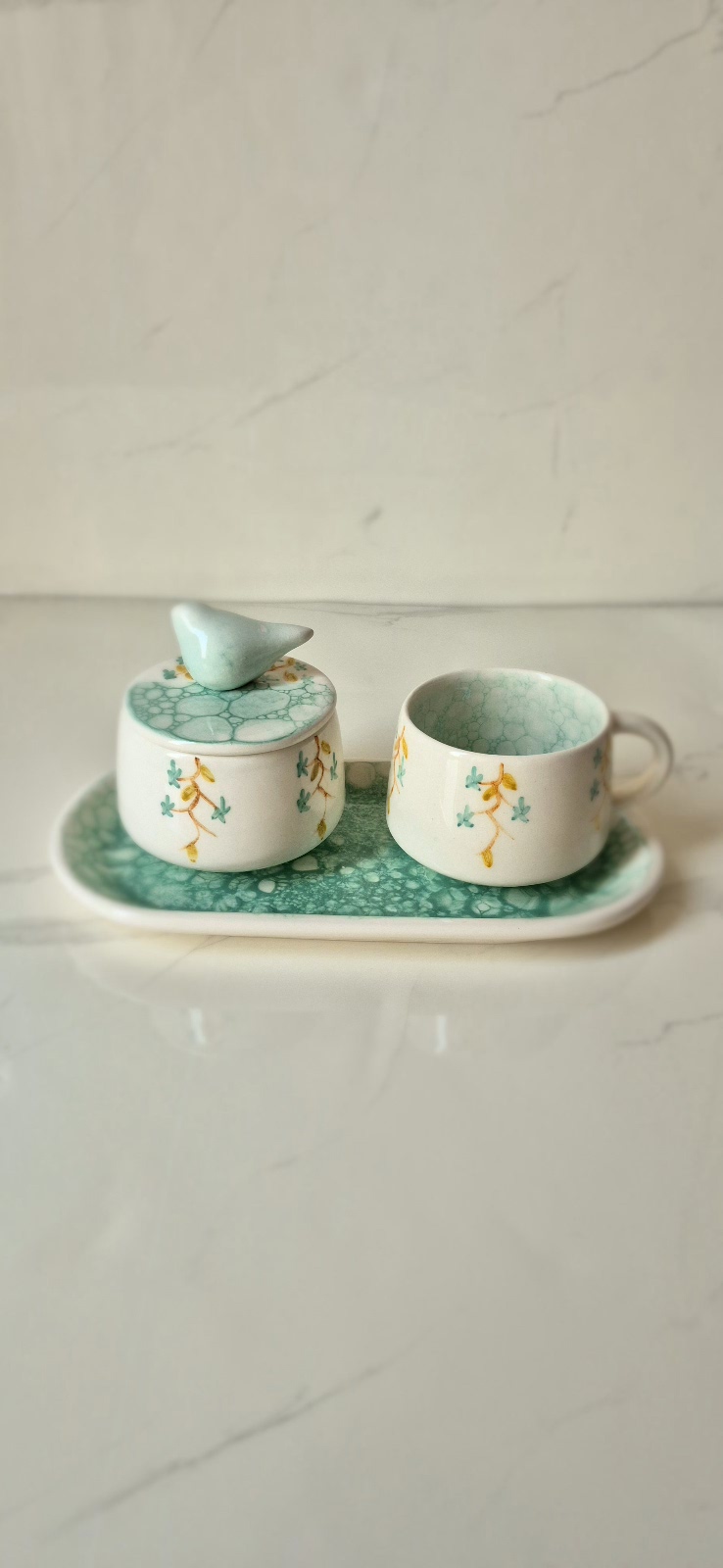 ست چای خوری تکنفره طرح گنجشکی آبرنگی با قندون دردار و زیره۴۵۰٬۰۰۰ تومان