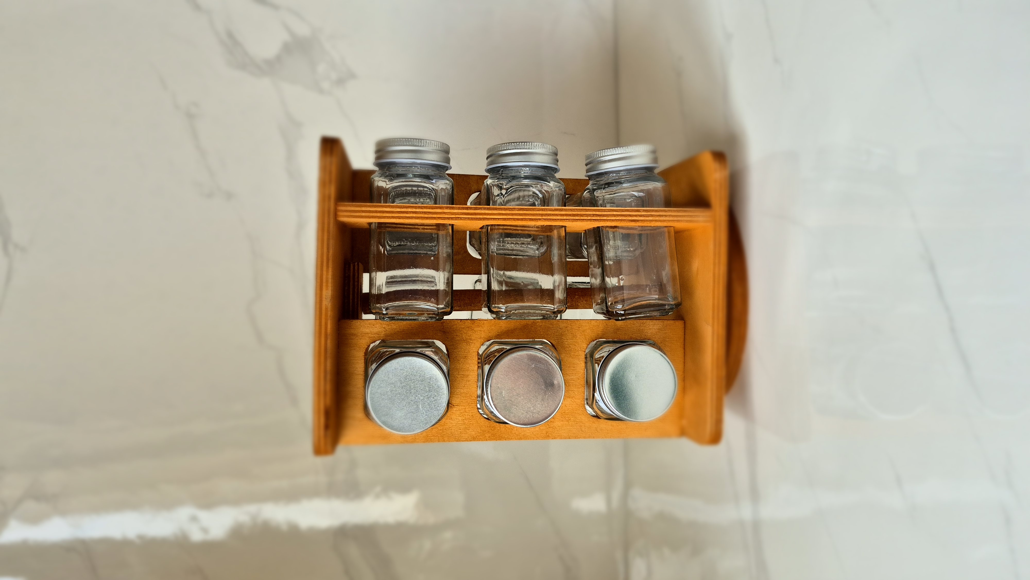 جای ادویه چوبی گردان با شیشه درب استیل 🌿✨