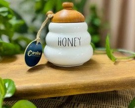 عسل خوری سرامیکی درب چوبی همراه قاشق چوبی | ظرف نگهداری عسل زیبا و کاربردی