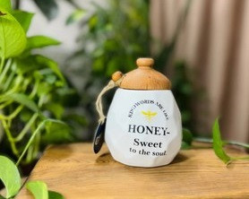 عسل خوری سرامیکی درب چوبی همراه قاشق چوبی | ظرف نگهداری عسل زیبا و کاربردی