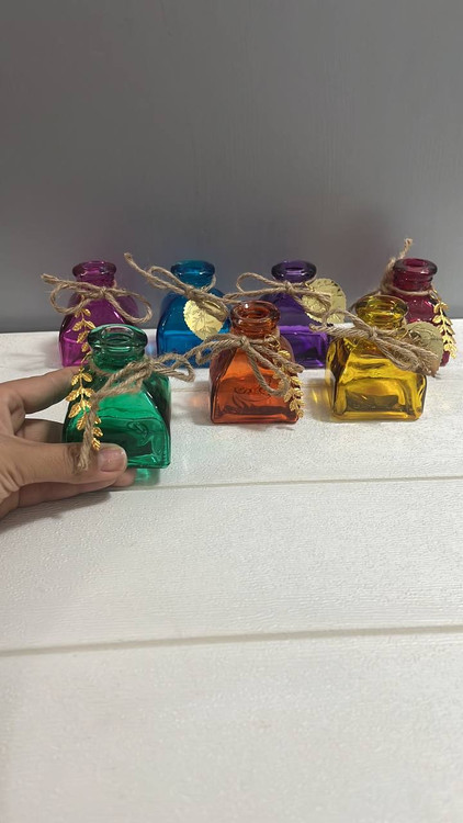 گلدان شیشهای کوچک با کف مربع رنگی | جزئیات ساده، جلوهای خاص