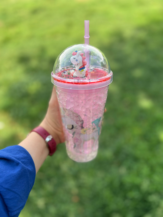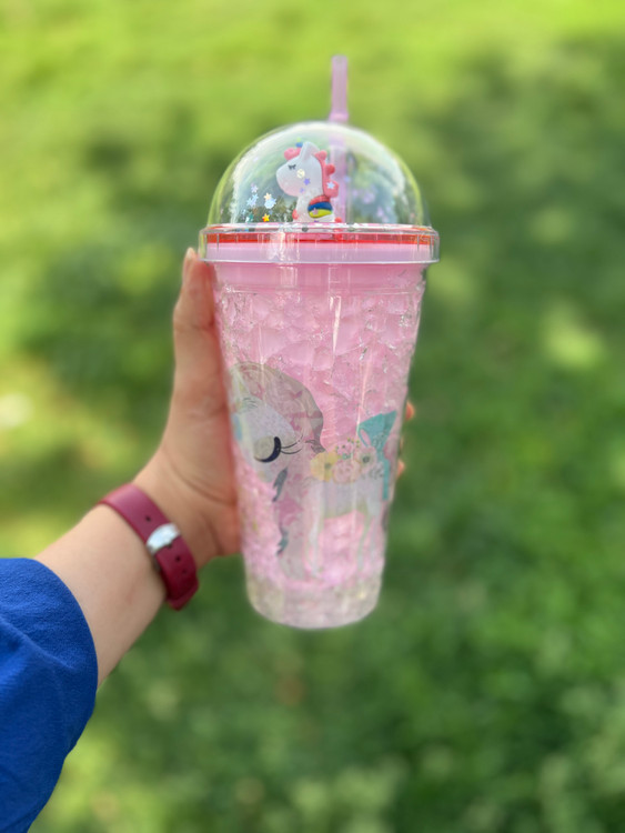 لیوان اسموتی چراغدار یخ ژله ای طرح یونیکورن صورتی