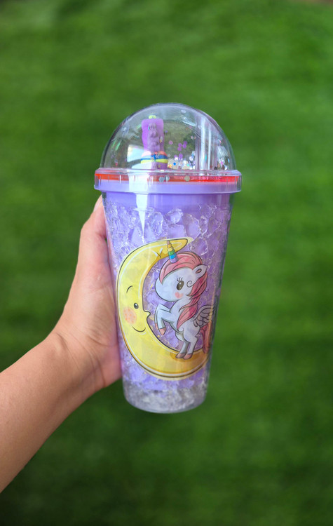 لیوان اسموتی چراغدار یخ ژله ای طرح ماه و یونیکورن