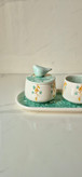 ست چای خوری تکنفره طرح گنجشکی آبرنگی با قندون دردار و زیره