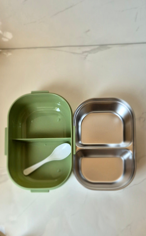 ظرف غذای کودک استیل جداشونده با قاشق پلاستیکی 🧸🍴