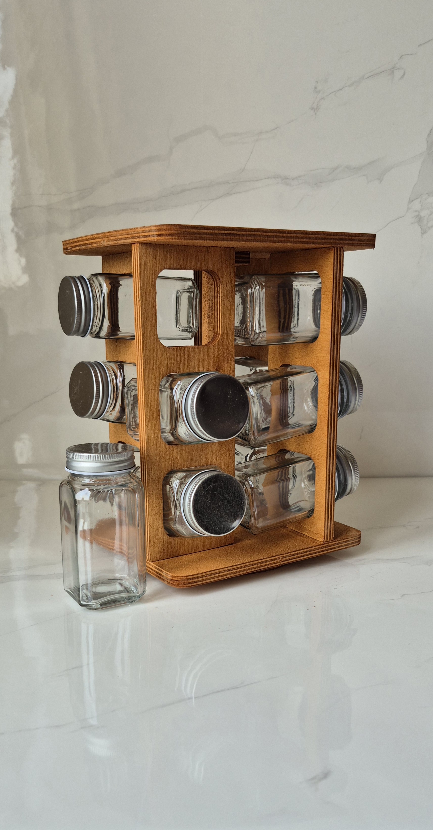 جای ادویه چوبی گردان با شیشه درب استیل 🌿✨
