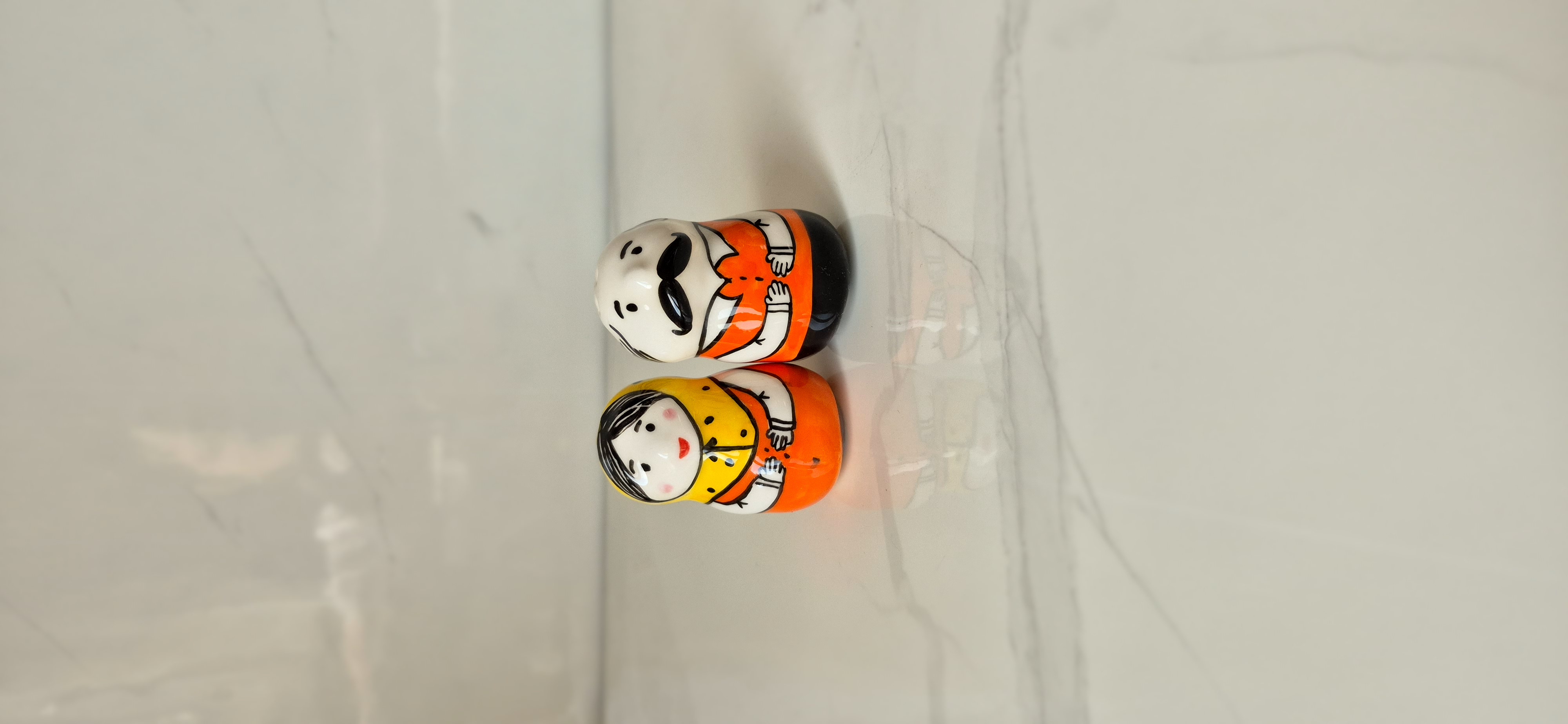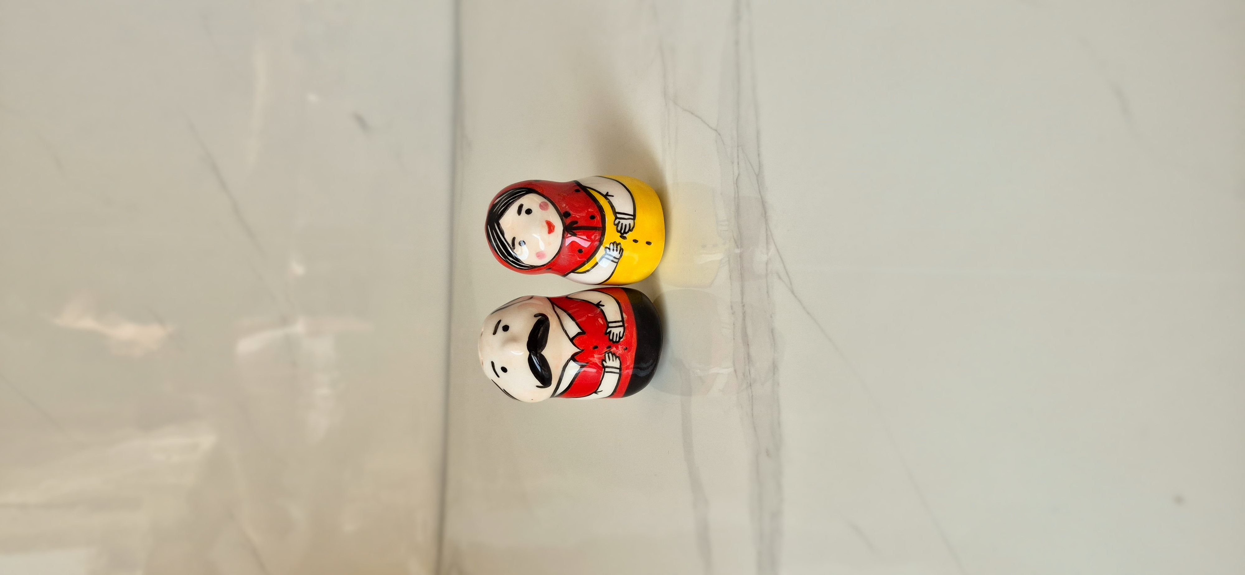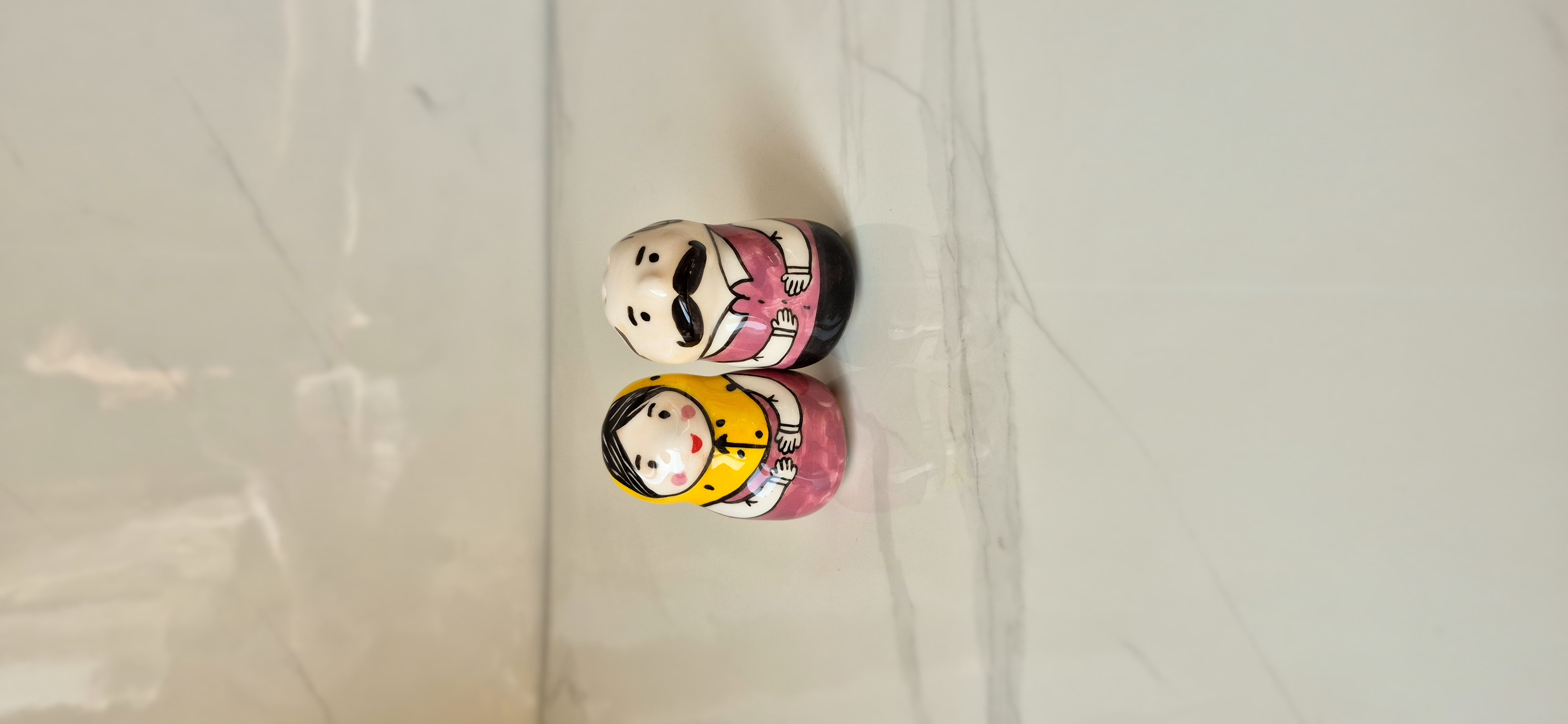 نمکدان جفتی طرح عروسکی بیژن و منیژه | نمکدان سرامیکی دکوراتیو