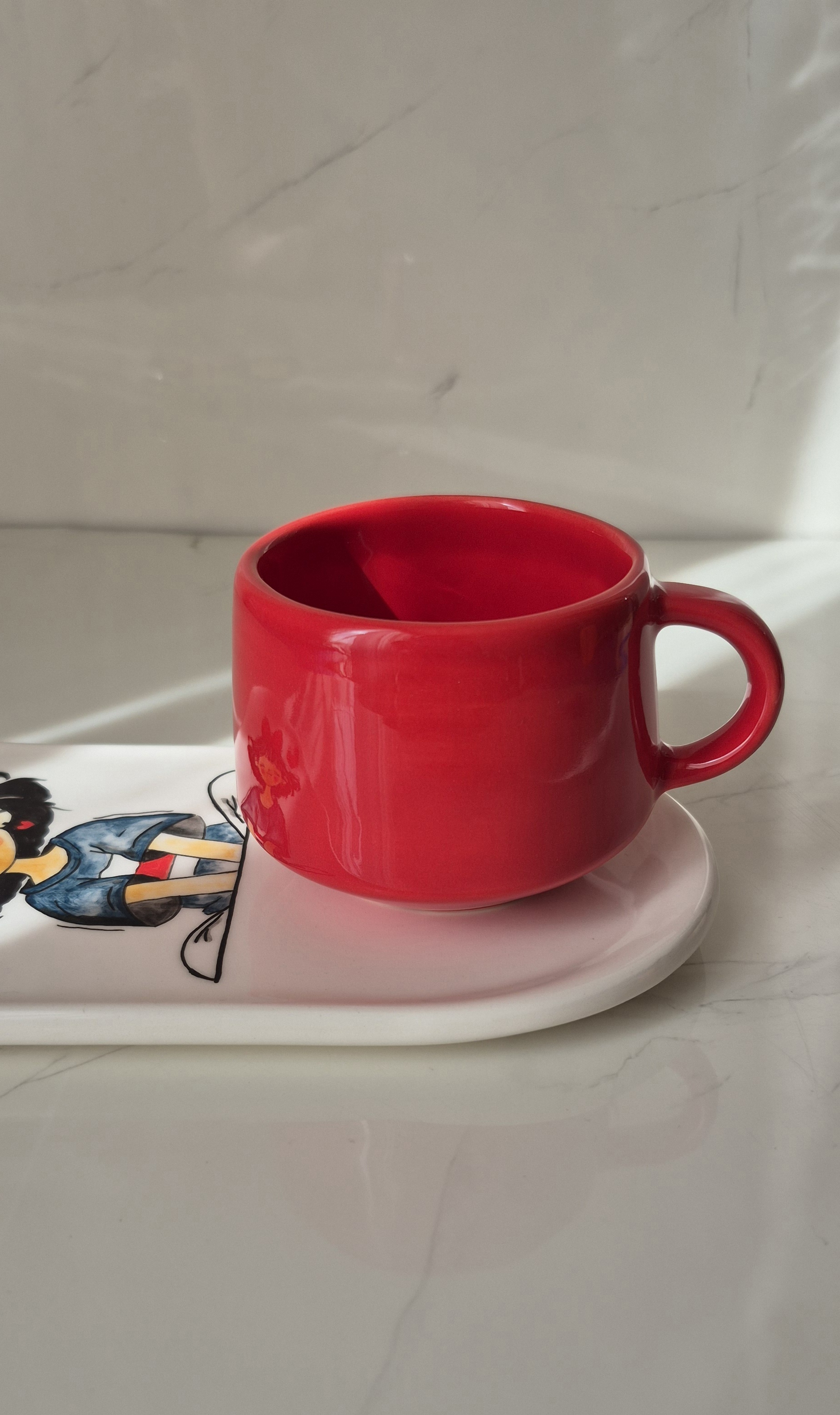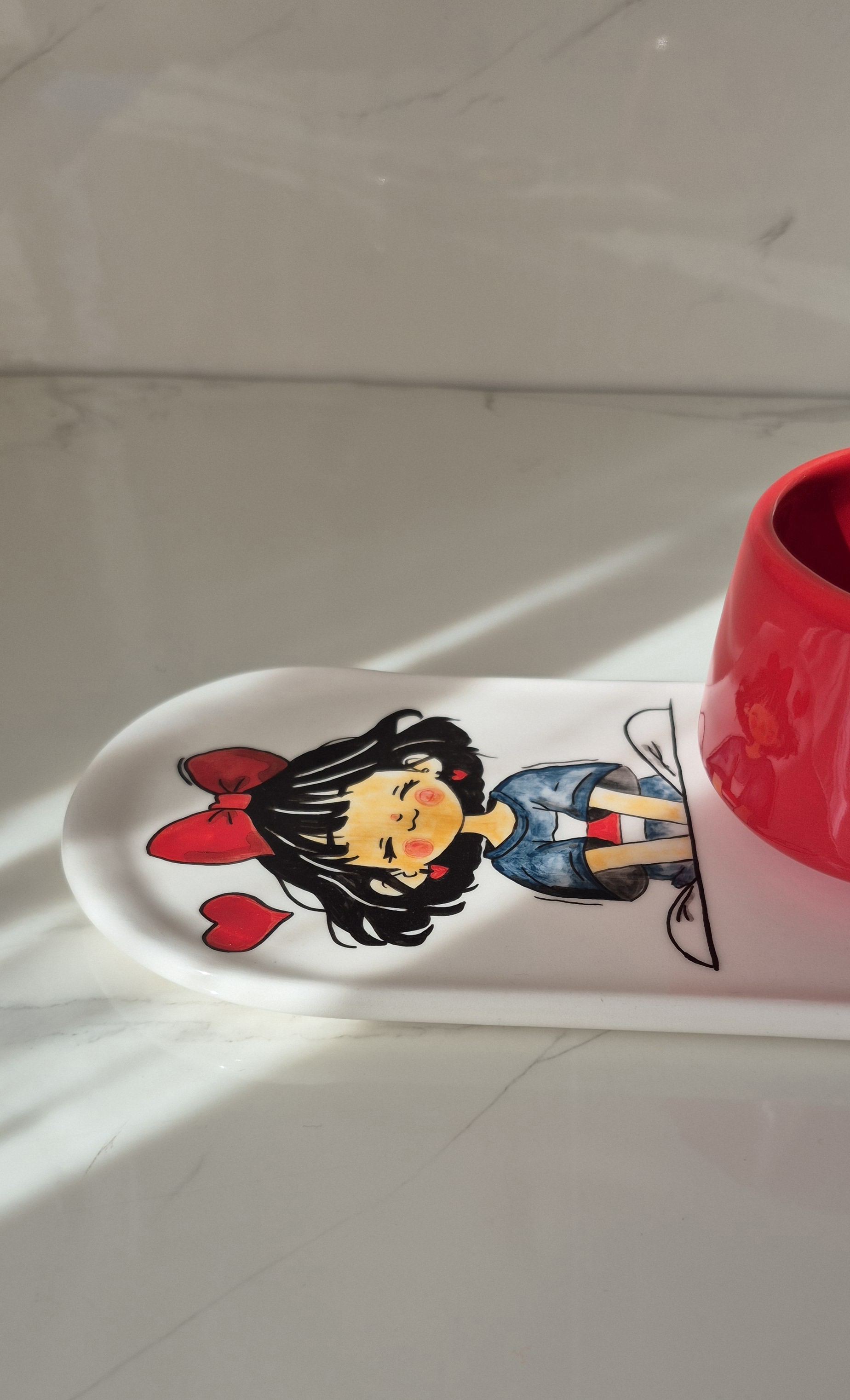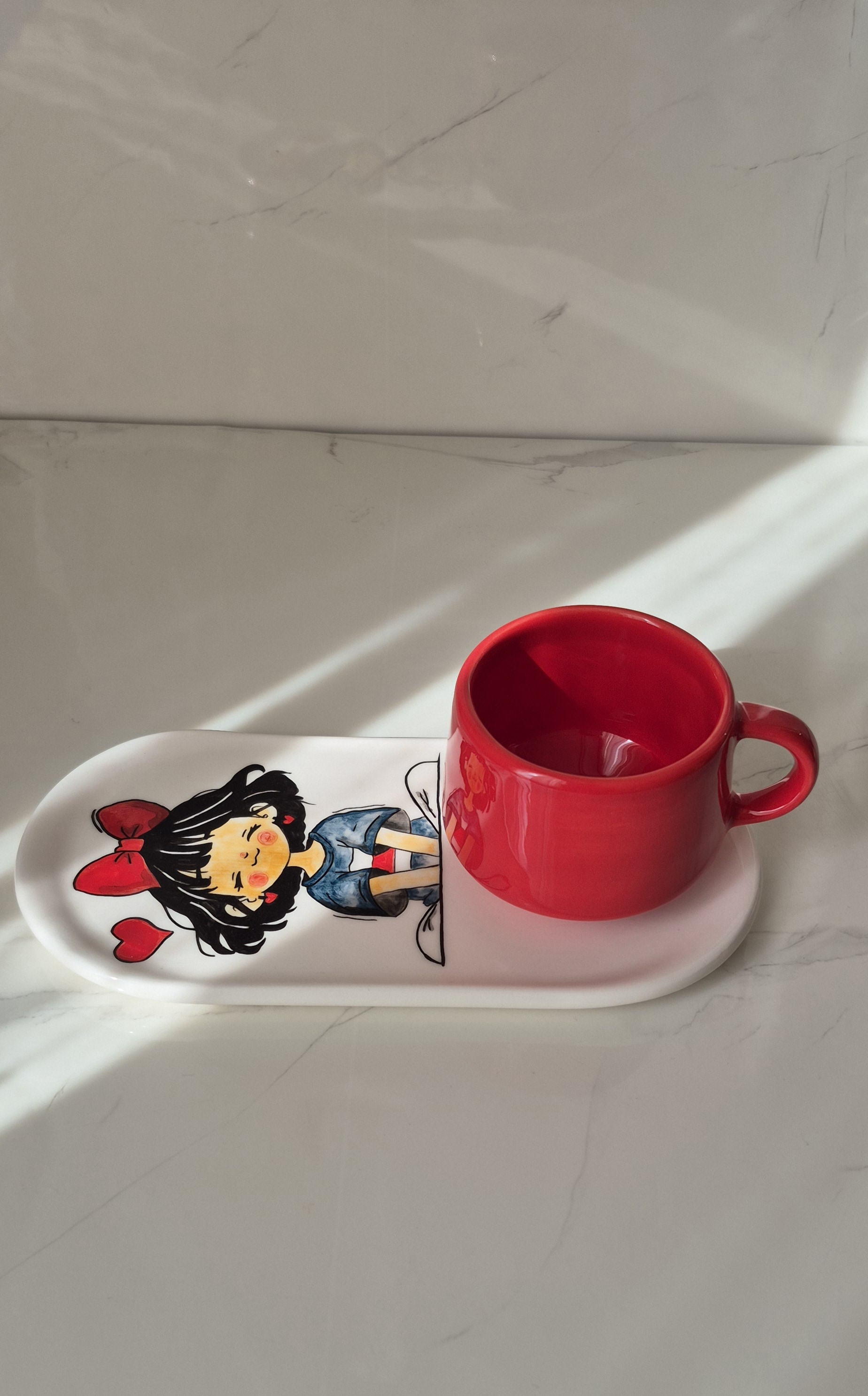 ست سرامیکی تکنفره طرح نقاشی عروسکی، یک انتخاب شیک و دلنشین برای سرو چای، قهوه یا دمنوش است. این ست شامل یک فنجان خوشدست با طراحی نقاشی های براق، یک زیره سرامیکی هماهنگ و یک قندون دردار زیباست.