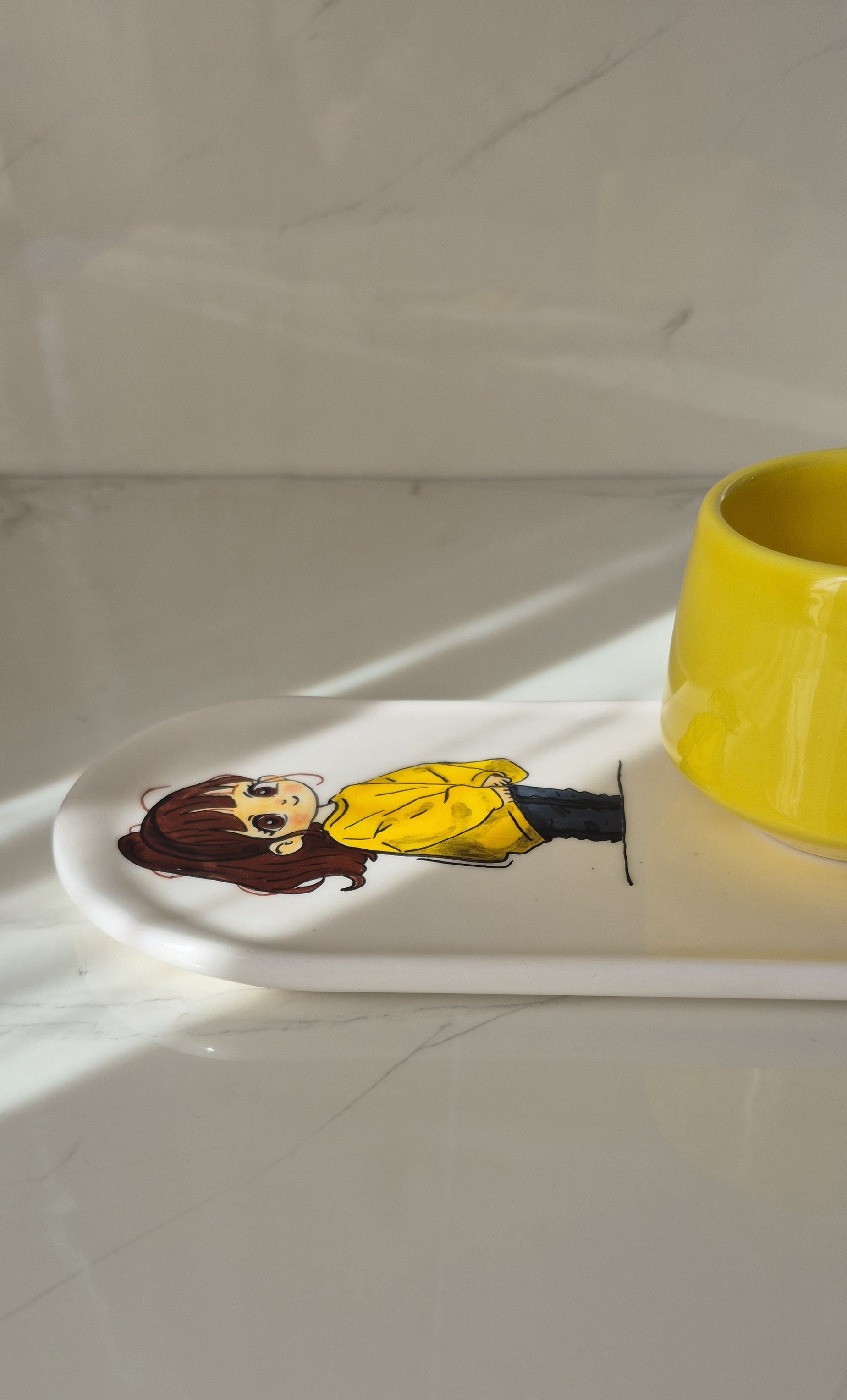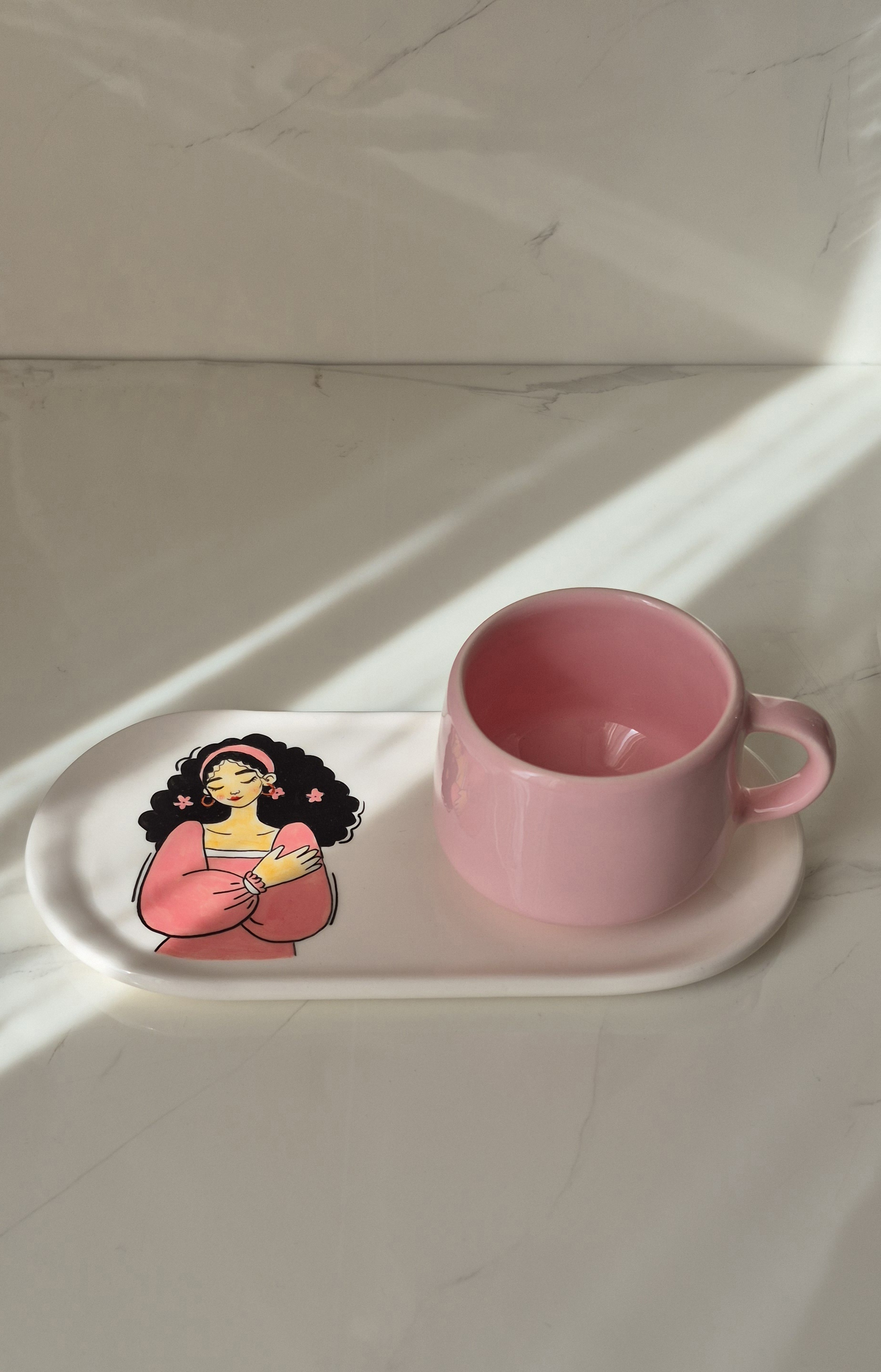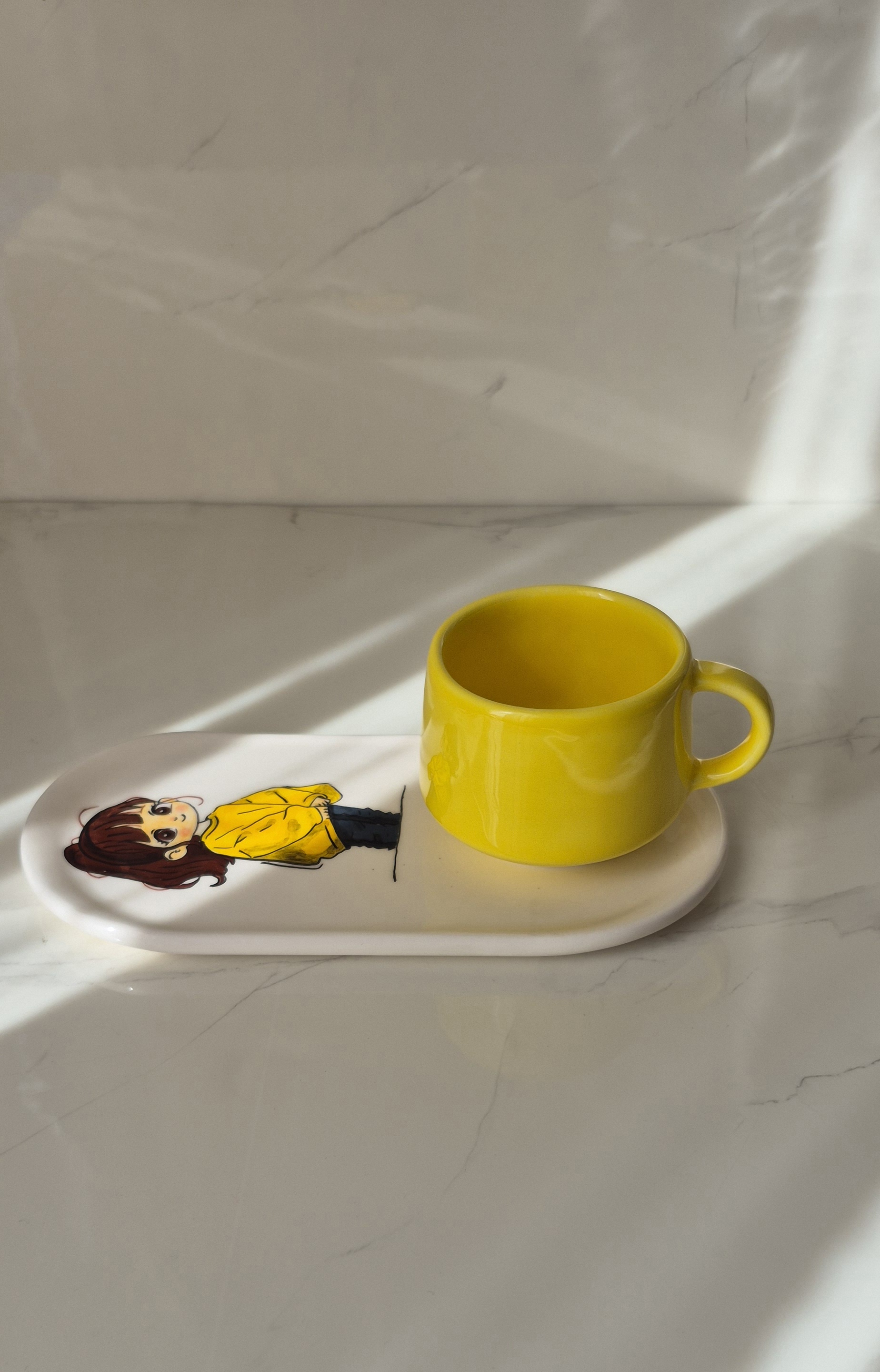 ست سرامیکی تکنفره طرح نقاشی عروسکی، یک انتخاب شیک و دلنشین برای سرو چای، قهوه یا دمنوش است. این ست شامل یک فنجان خوشدست با طراحی نقاشی های براق، یک زیره سرامیکی هماهنگ و یک قندون دردار زیباست.