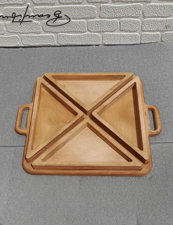 تخته سرو ۴ قسمتی جداشونده با زیره مربع و پیالههای مثلثی | ست پذیرایی مدرن و چندکاربردی چوبی