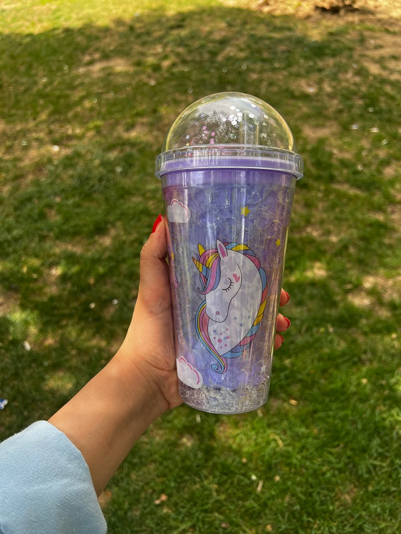 لیوان اسموتی چراغدار یخ ژله ای طرح یونیکورن بنفش