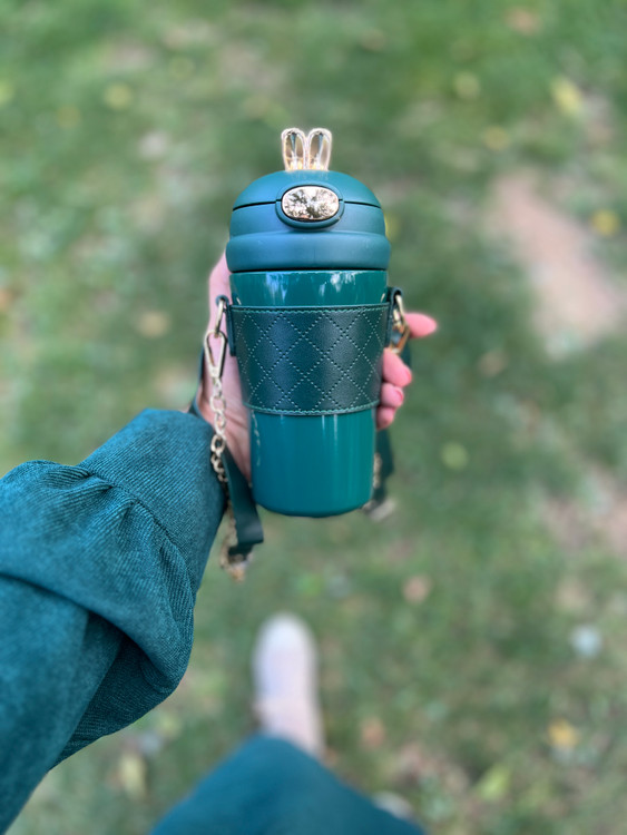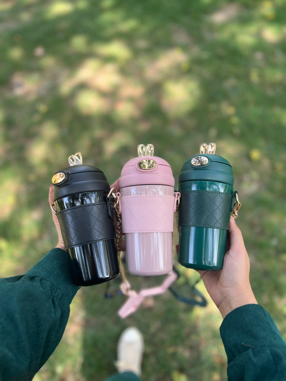 تراول ماگ خرگوشی با طراحی خاص و دو بند کاربردی؛ یک بند چرمی دور بدنه برای دست گرفتن راحت و یک بند جداگانه ترکیبی از چرم و زنجیر که امکان حمل ماگ به صورت آویز روی دوش را فراهم میکند. این ترکیب منحصر به فرد علاوه بر زیبایی، کارایی بالا و راحتی حمل را در موقعیتهای مختلف به ارمغان میآورد. بدنه مقاوم و عایق ماگ، نوشیدنیهای گرم و سرد را مدت طولانی حفظ میکند و طرح خرگوشی بامزه، جذابیت ظاهری آن را تکمیل میکند